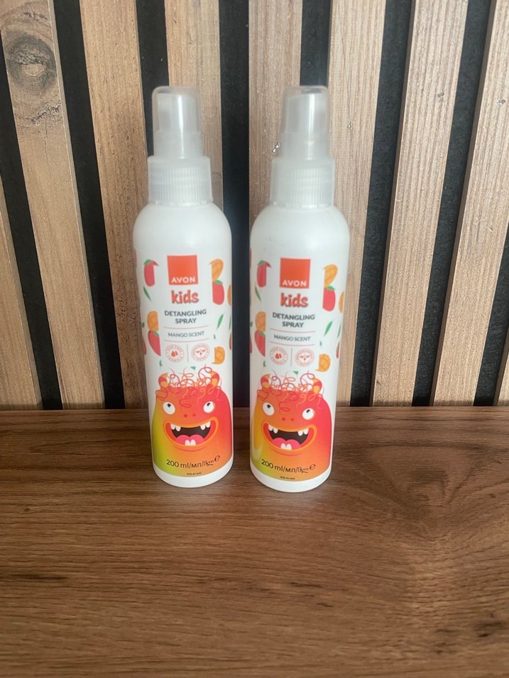 Avon Kids mango kokulu saç açıcı sprey, 200 ml şişede çocukların saç düğümlerini nazikçe açmak için tasarlanmıştır.