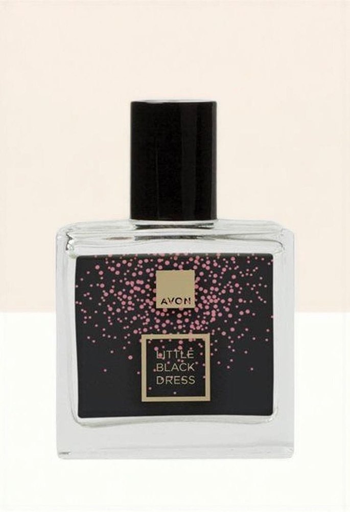 Avon Little Black Dress kadın parfümü, siyah kapaklı şık şişede, siyah ve pembe noktalı etiketle klasik bir koku sunar.