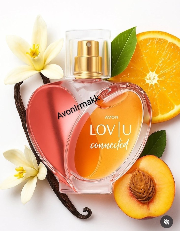 Avon Lov U Connected kadın parfümü, kalp şeklinde şişede portakal ve şeftali gibi meyvemsi ve çiçeksi notalar içerir.