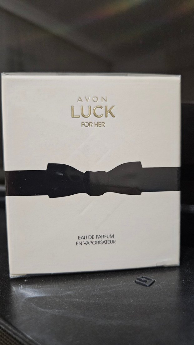 Avon Luck For Her kadınlar için tasarlanmış, siyah fiyonk detaylı beyaz kutuda eau de parfum parfümdür.