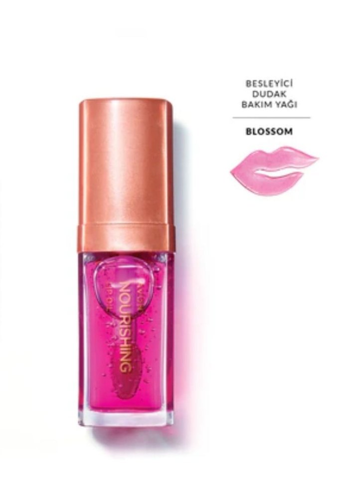 Parlak bitişli pembe dudak parlatıcısı, besleyici bakım yağı içerir ve dudakları yumuşak tutar. Blossom olarak adlandırılmıştır.