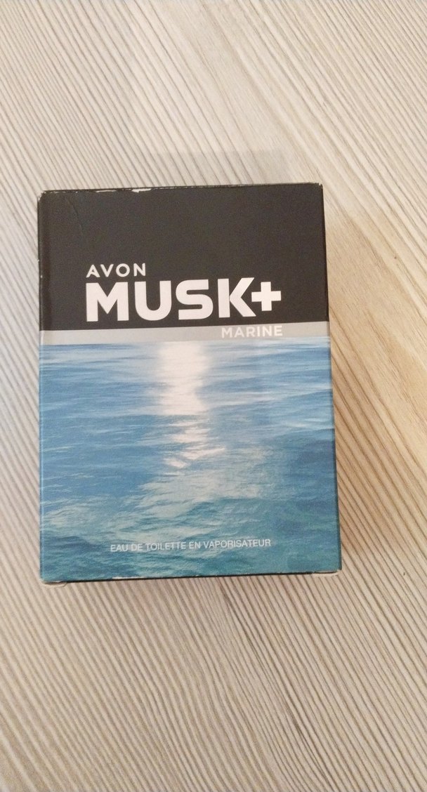 Avon Musk+ Marine erkek parfümü parlak mavi kutuda, deniz esintili kokusuyla avant-garde ve karşı kültür tarzını yansıtıyor.