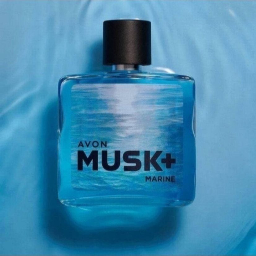 Avon Musk+ Marine erkek parfümü, parlak mavi şişesi ve ferah deniz kokusuyla athleisure tarzına uygun.