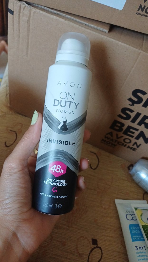 Avon On Duty kadın deodorant, 48 saat koruma ve kuru gözenek teknolojisi sunar. 150 ml sprey formundadır, iz bırakmaz.