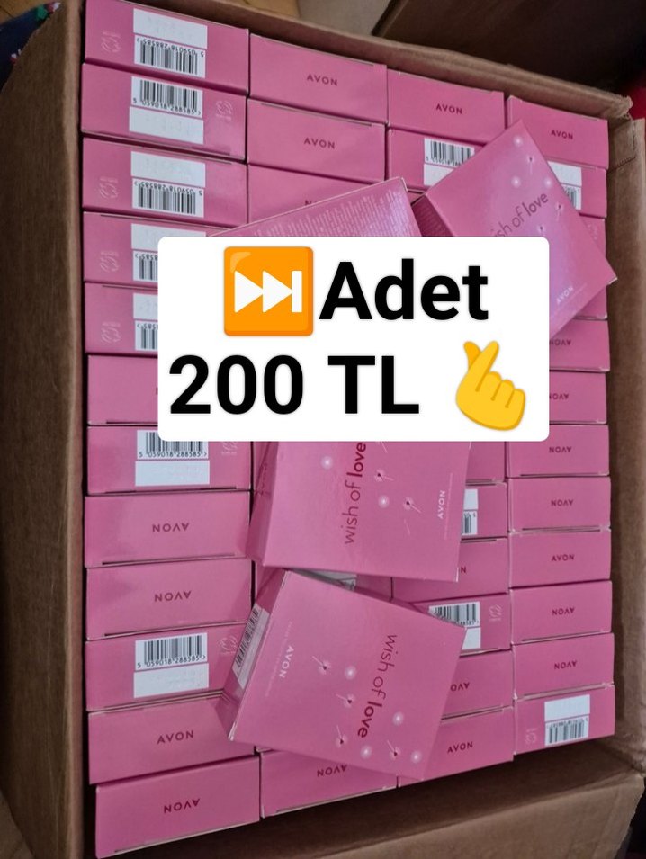 Avon markalı wish of love kutusunda ve düzenli şekilde istiflenmiş. Adet fiyatı 200 TL.