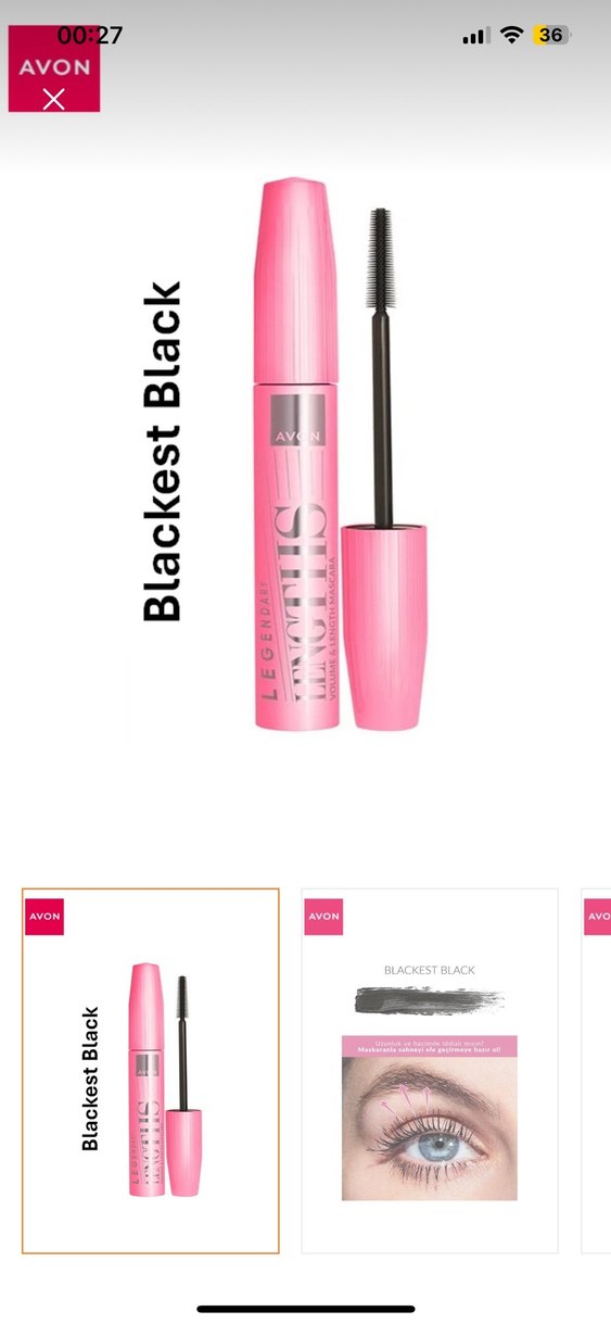 Avon maskara, pastel pembe tüpte, en siyah siyah renkte yoğun kirpikler için. Kolay uygulama sağlayan hassas fırça içerir.