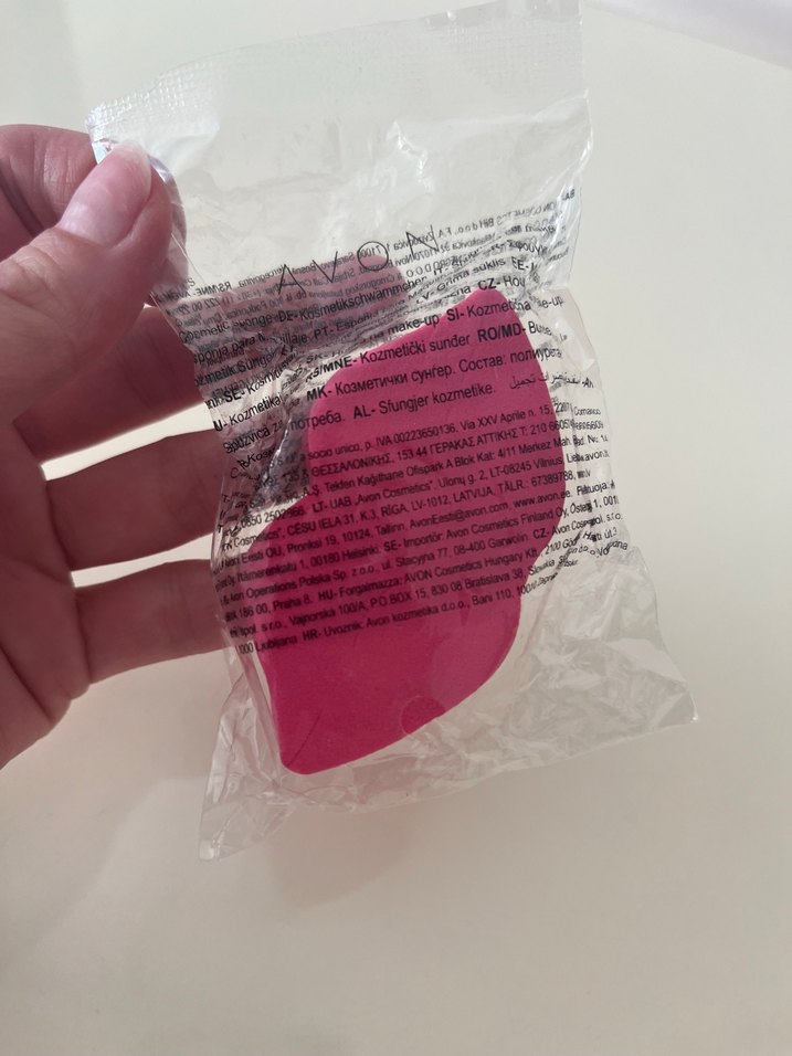 Yumuşak ve pürüzsüz pastel pembe makyaj süngeri, kozmetik uygulamasında kolaylık sağlar. Etiketli ürün #avon #avonmakyajsüngeri #makyajsüngeri
