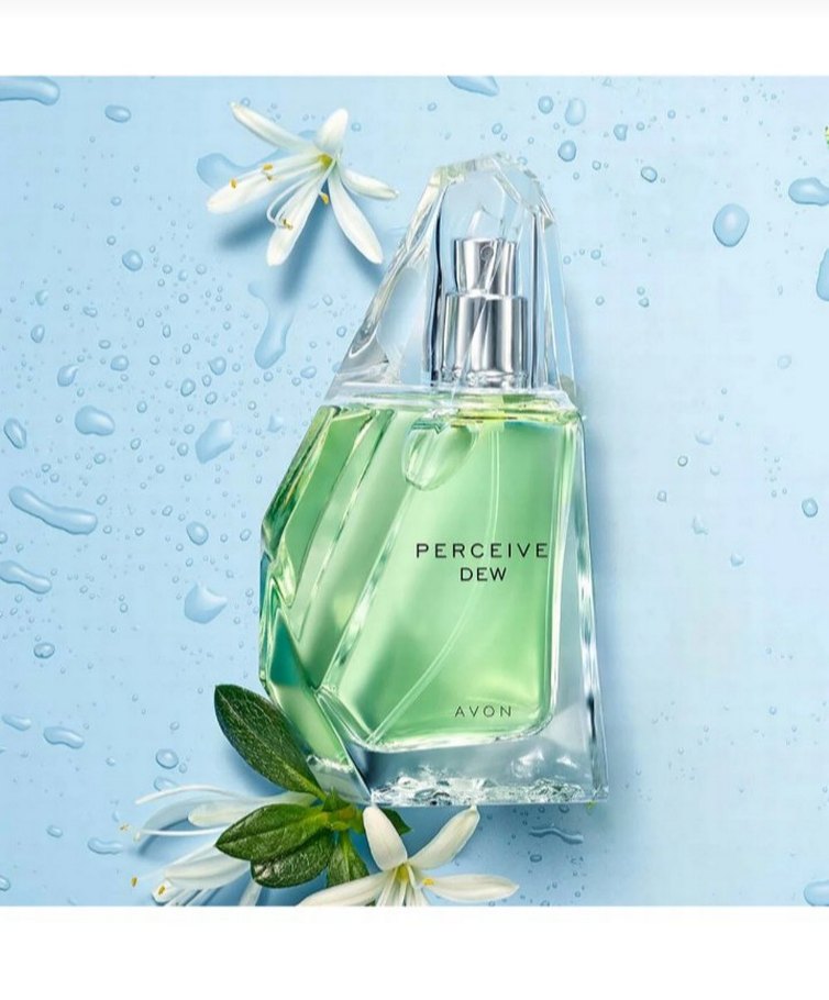 Avon Perceive Dew kadın parfümü, ferah ve doğal çiçeksi ve yeşil notalara sahip bir kokudur. Şişe tasarımı tazeliği yansıtır.