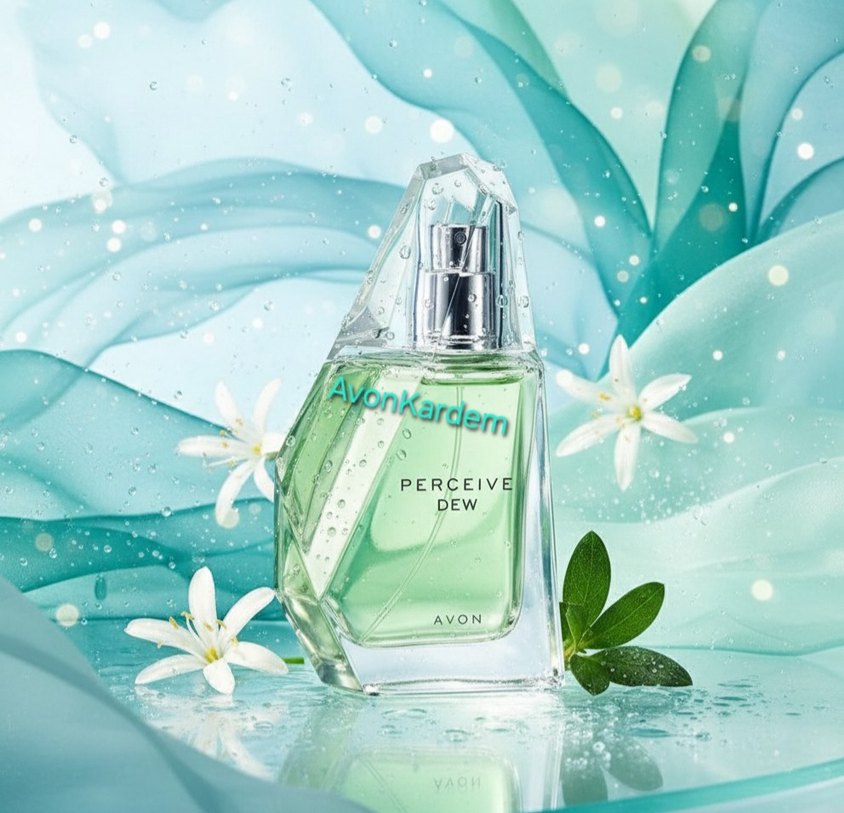 Avon Perceive Dew kadın parfümü, ferah ve hafif kokusuyla dikkat çeker. Şişe tasarımı berraklık ve tazeliği vurgular.