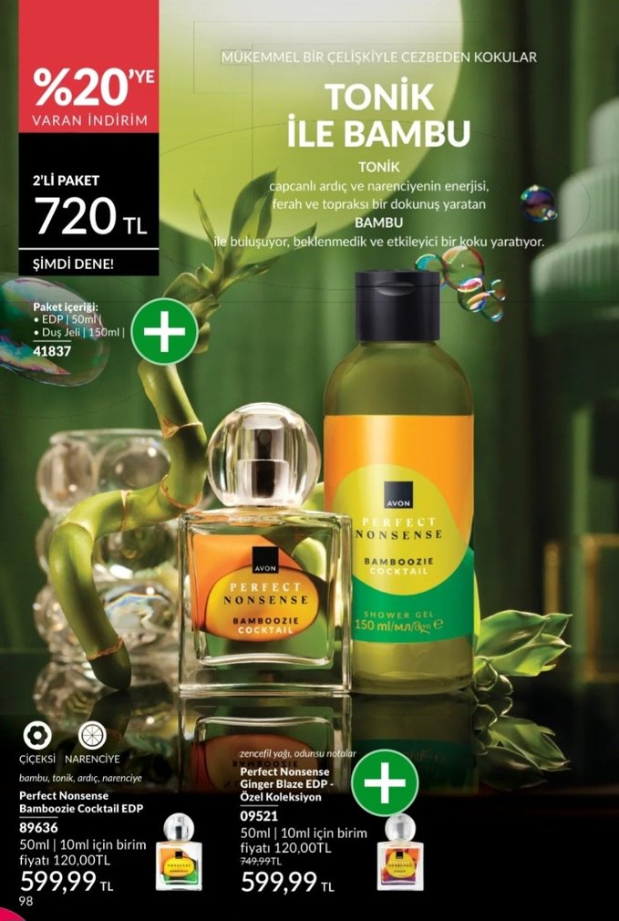 Avon Perfect Nonsense Bamboo set, 50ml Eau de Parfum ve 150ml duş jeli içerir. Narenciye ve bambu notalarının ferah ve toprak kokusunu barındırır.