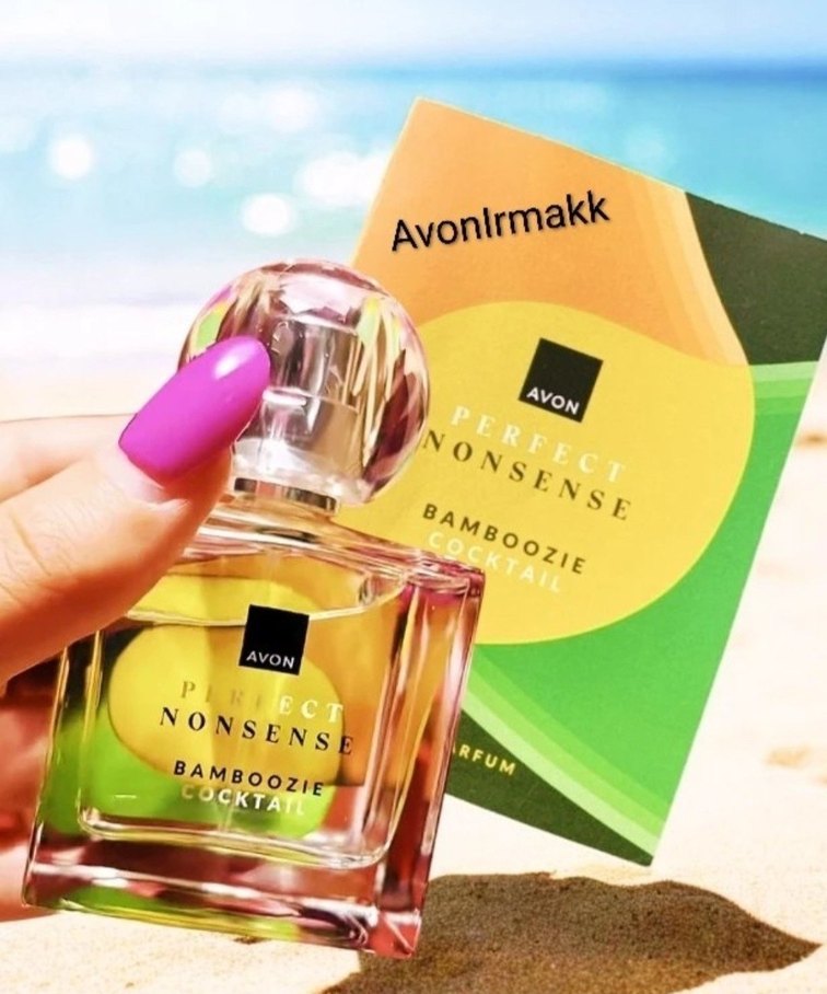 Avon Perfect Nonsense Bamboozie kadın parfümü, taze ve canlı bir kokuya sahiptir. Şişesi şeffaf ve yuvarlak kapaklıdır. Ambalajı yeşil ve sarı tonlarındadır.