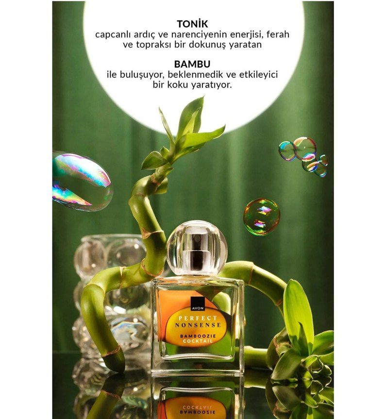Avon Perfect Nonsense Bambu, capcanlı ardıç ve narenciyenin enerjisi ile ferah ve topraksı bir dokunuşu birleştirerek beklenmedik ve etkileyici bir koku yaratıyor.
