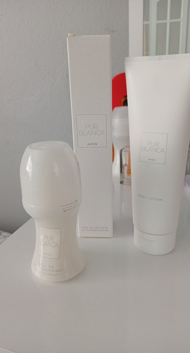 Avon Pur Blanca kadın parfüm seti, deodorant, vücut losyonu ve eau de toilette içerir, ferah bir kokuya sahiptir.