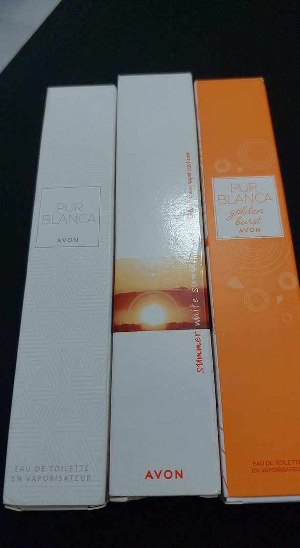 Avon Pur Blanca kadınlar için Eau de Toilette parfümü, şık kutularda, ferah ve çiçeksi kokulara sahip. Klasik ve Golden Burst seçenekleriyle sunulur.