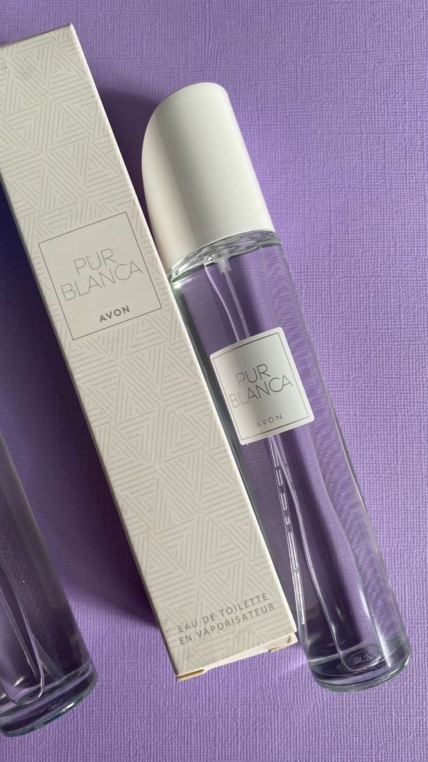 Avon Pur Blanca kadın parfümü beyaz kapaklı şeffaf şişede, ferah ve temiz bir koku sunar. 50ml.