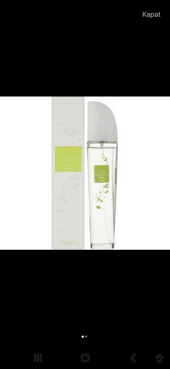 Avon Pur Blanca kadın parfümü, taze ve çiçeksi kokusuyla 50 ml şişede sunulmaktadır.