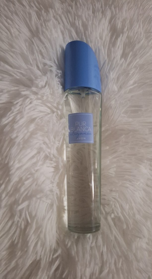 Sadece 1-2 fıs sıkıldı kutusu da vardır Avon Pur Blanca kadın parfümü, 50 ml şeffaf cam şişe ve açık mavi kapak ile, ferah ve temiz bir koku sunar.