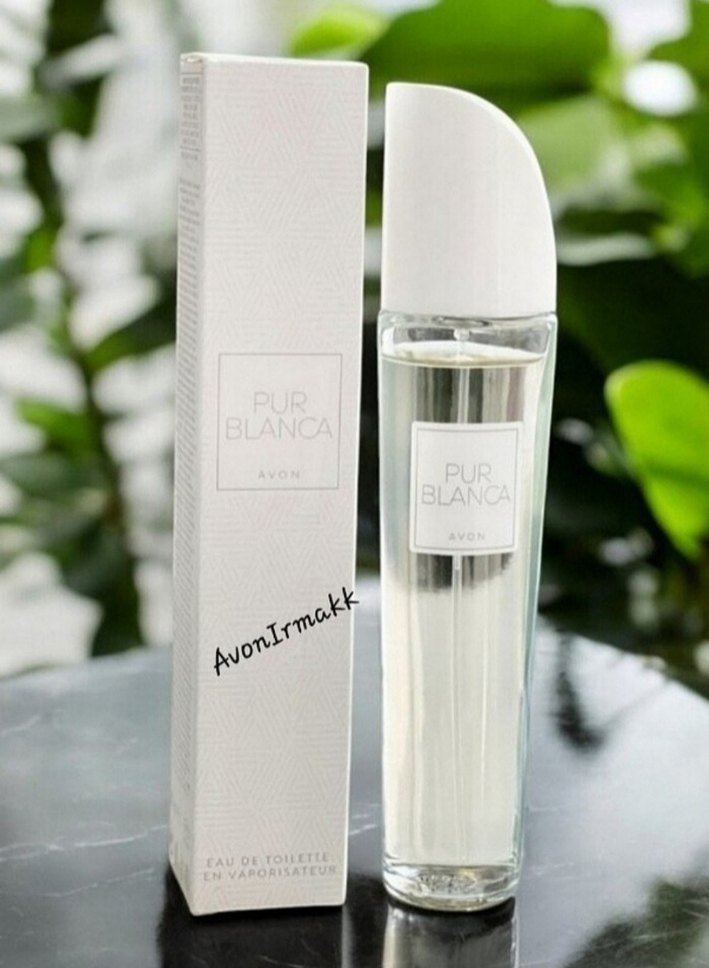 Avon Pur Blanca kadın parfümü, temiz ve ferah kokusuyla şeffaf şişede beyaz kapaklı, sade ve şık ambalajda sunuluyor.