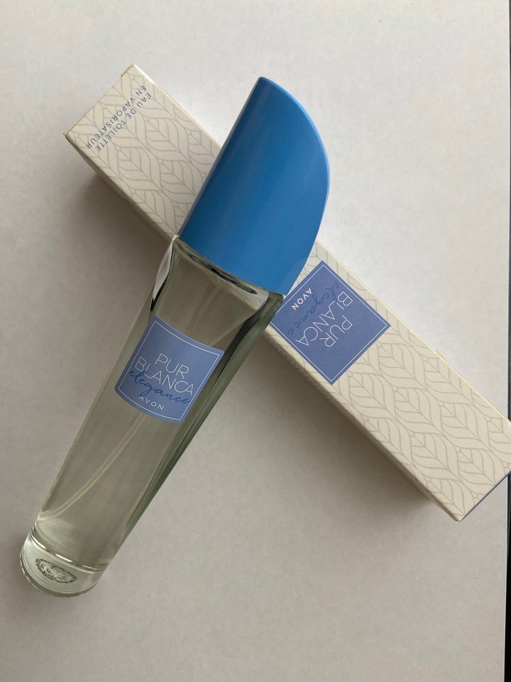 Avon Pur Blanca kadın parfümü, mavi kapaklı şık cam şişede, taze ve zarif bir koku sunar. Orijinal kutusuyla birlikte.
