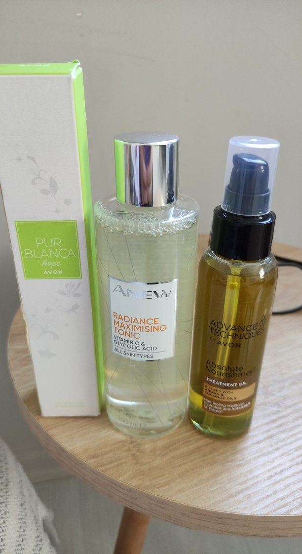 Avon Pur Blanca tonik, C vitamini ve glikolik asit içerir, tüm cilt tipleri için parlaklığı artırır. Avon saç bakım yağı saçları besler ve korur.