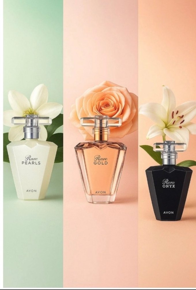 Avon Ran koleksiyonu, her biri farklı kokuya ve şık şişeye sahip Pearls, Gold ve Onyx parfümlerini içerir.