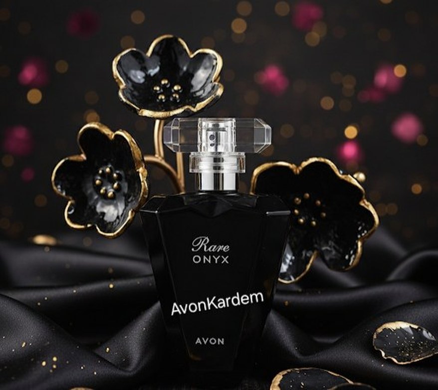 Avon'un Rare Onyx kadın parfümü, siyah şişede şeffaf kapaklı ve AvonKardem özel kokusuyla sunuluyor. Eşsiz bir koku deneyimi sağlar.