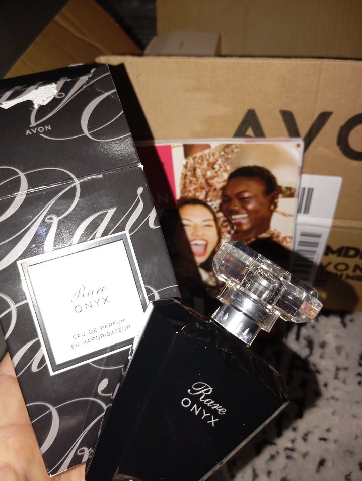 Avon Rare Onyx kadın parfümü, şık siyah şişede ve keskin şeffaf kapaklıdır. Günlük kullanım için zengin ve zarif bir koku sunar.