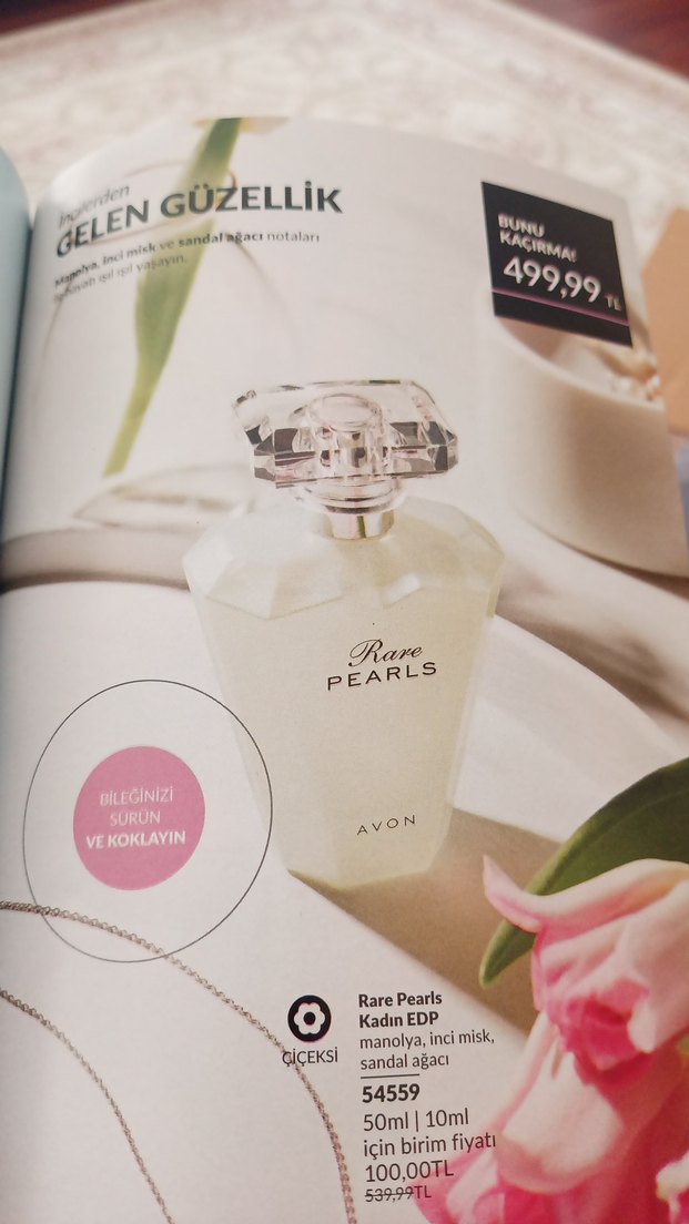 Avon Rare Pearls kadın parfümü, manolya, inci misk ve sandal ağacı notalarıyla çiçeksi ve zarif bir koku sunar.