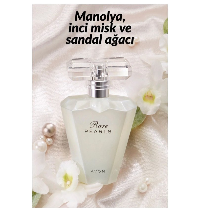 Avon Rare Pearls kadın parfümü, manolya, inci misk ve sandal ağacı notalarıyla eşsiz bir koku sunar.