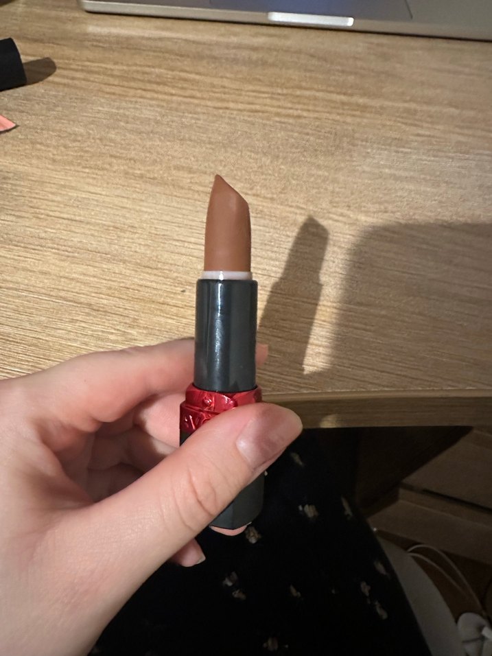 Bir kez denendi. Koyu bej renkte, pürüzsüz dokulu bir ruj. Doğal ve belirgin bir görünüm sağlar.
