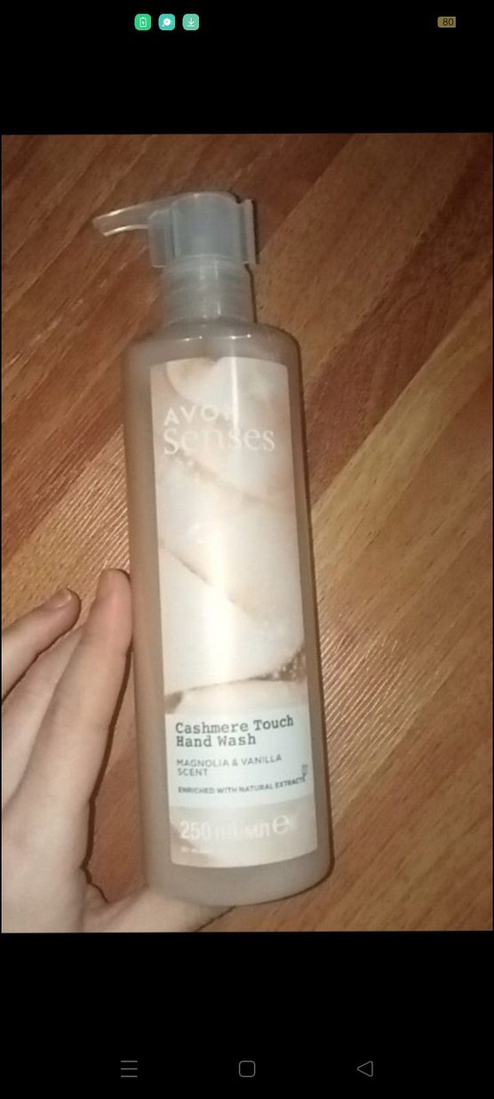 Avon Senses Cashmere Touch sıvı sabun, manolya ve vanilya kokusuyla, doğal özlerle zenginleştirilmiştir. 250 ml şişede nazik temizleme sağlar.