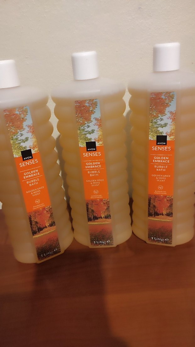 Avon Senses Golden Embrace duş jeli, altın baharat kokusuyla cildi canlandırır. 1 litrelik şişede köpük banyosu formülüne sahiptir.