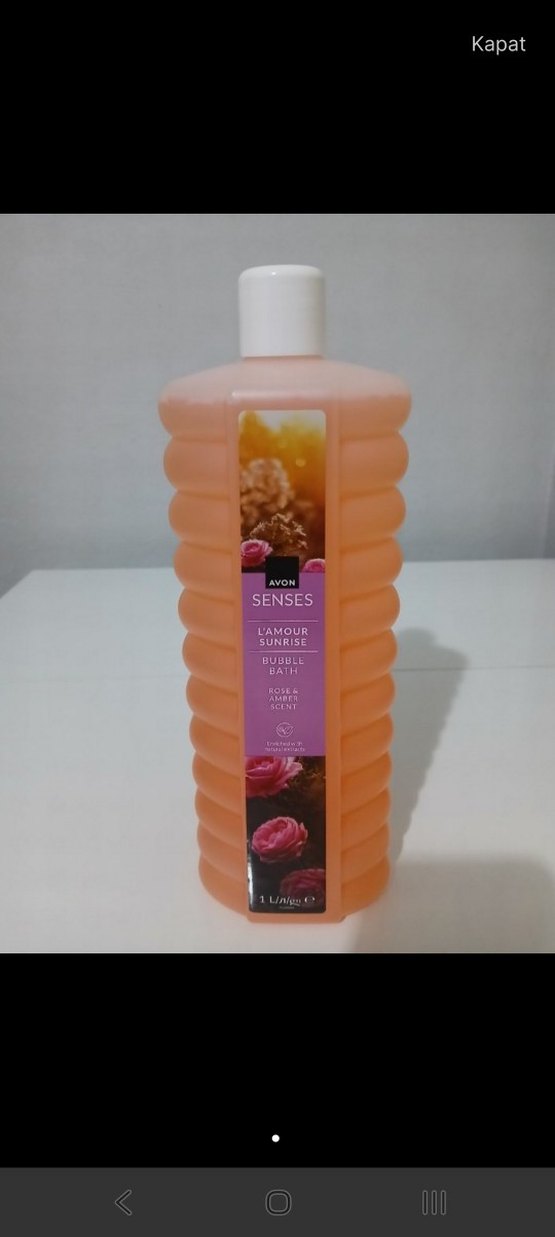 Avon Senses L'Amour Sunrise duş jeli, gül ve amber kokusuyla ferahlatıcı köpük banyosu sunar. 1 litrelik şişede nazik ve aromatik temizlik sağlar.