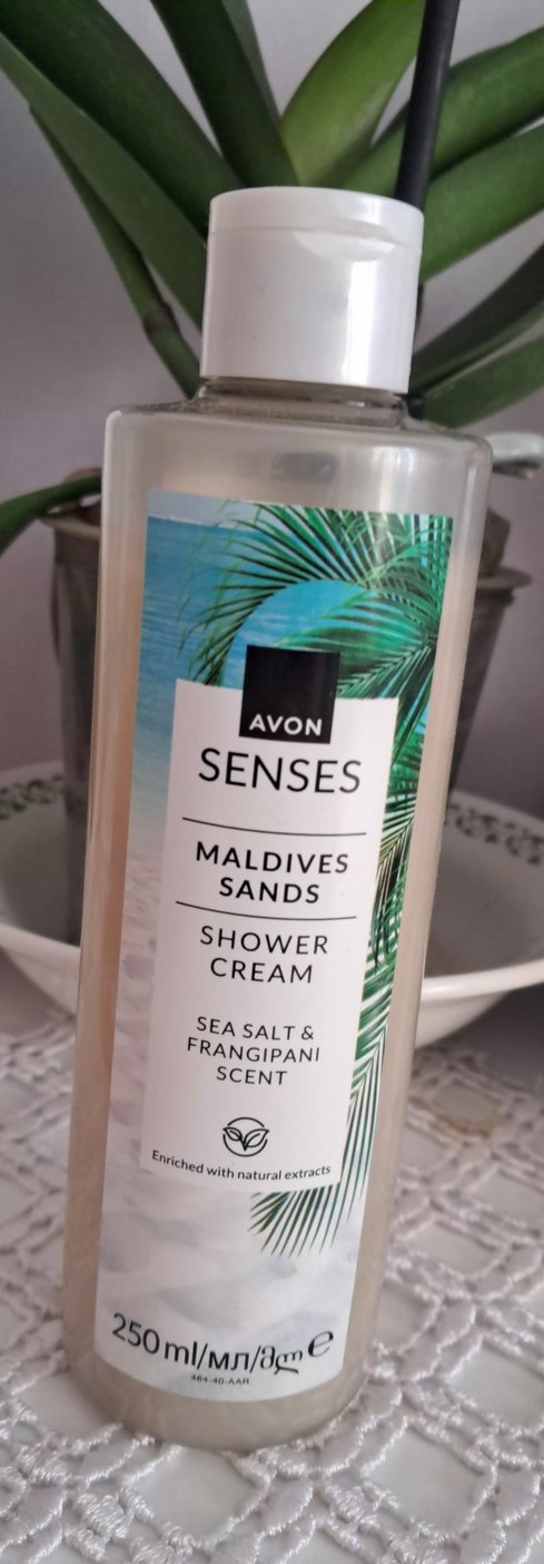 Avon Senses Maldives Sands duş kremi, deniz tuzu ve frangipani kokusuyla ferahlatıcı bir temizlik sağlar. Cildi besler ve tropikal bir koku sunar.