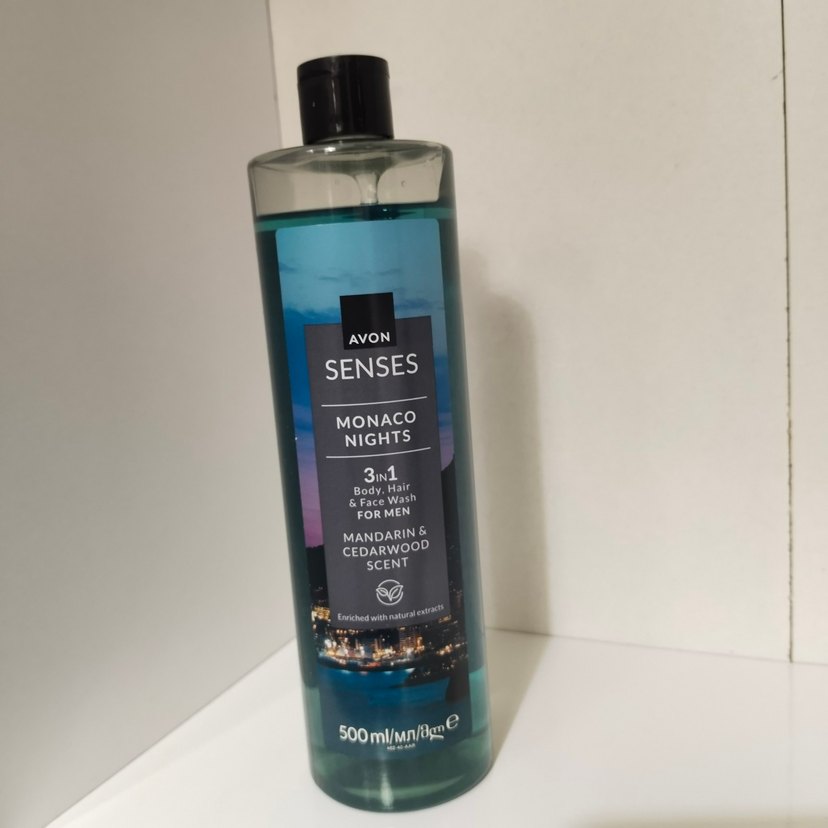 Avon Senses Monaco Nights, mandalina ve sedir ağacı kokusuyla vücut, saç ve yüz temizliği için 3'ü 1 arada duş jelidir. 500 ml şişede doğal özler içerir.