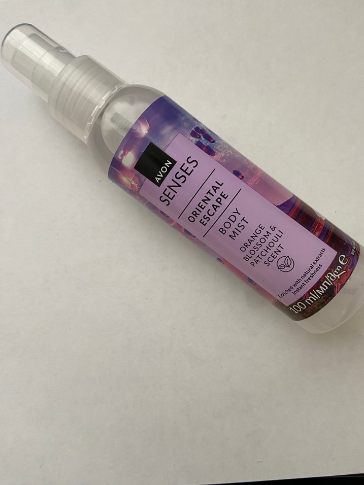 Avon Senses Oriental Escape vücut spreyi, portakal çiçeği ve paçuli kokusuyla 100 ml sprey şişede ferahlatıcı koku sunar.