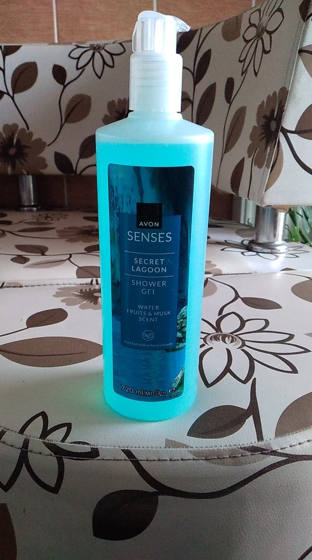 Avon Senses Secret Lagoon duş jeli, su meyveleri ve misk kokusuyla ferahlatıcı bir temizlik sağlar. 720 ml şişede sunulur.
