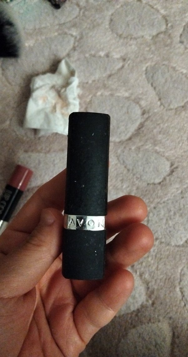 Avon siyah ruj, koyu ve yoğun renkte, şık siyah kutuda. Cesur makyajlar için uygun. kapağı yeni yapısı yapışkansı silinince çıkıyo