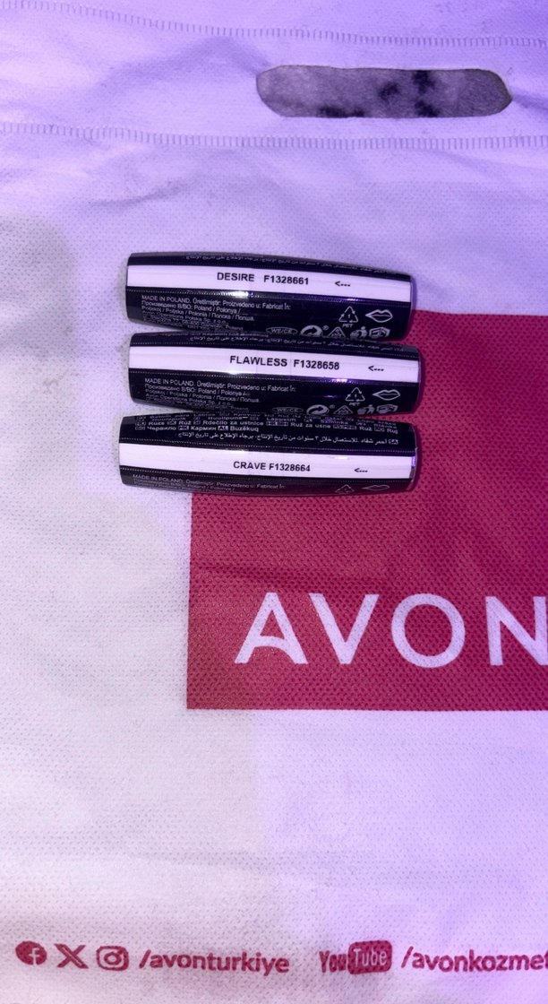 Avon markasına ait koyu siyah renkte canlı ruj. Ürün kodu DESEF132. Cesur dudak makyajları için uygundur.