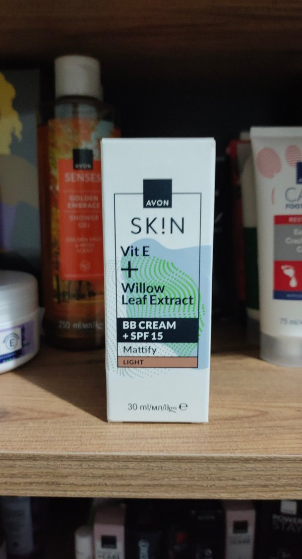Avon SK!N BB Krem açık ton, SPF 15 koruması ve matlaştırıcı etkisiyle cildi besler. İçeriğinde E vitamini ve söğüt yaprağı özü bulunur. 30ml şişede.