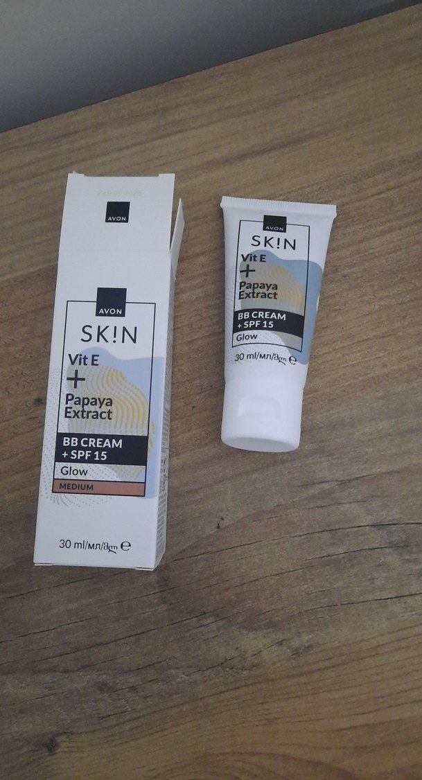 Avon SKIN Vit E ve Papaya Özlü BB Krem, SPF 15 koruma ve doğal ışıltı sağlar. 30 ml tüpte, açık bej rengindedir.