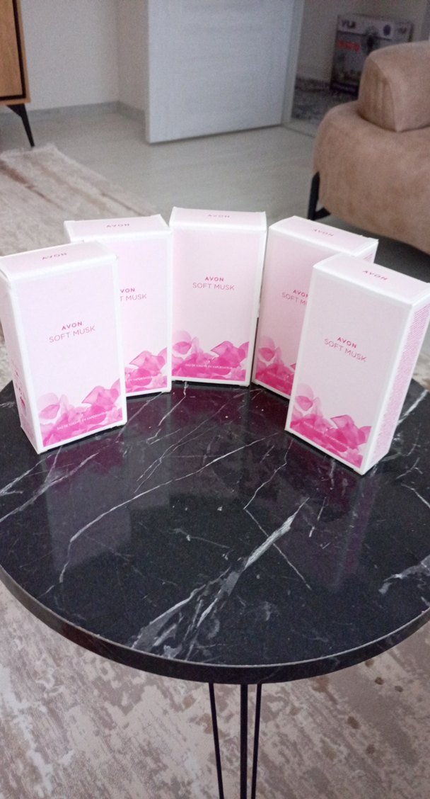 Avon Soft Musk kadın parfümü, yumuşak ve çiçeksi bir kokuya sahip olup şık pembe ambalajda sunulmaktadır.
