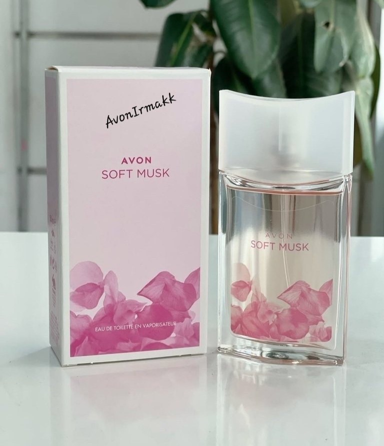 Avon Soft Musk kadın parfümü, çiçeksi notalara sahip yumuşak misk kokusuyla, pembe detaylı şeffaf şişede sunuluyor.