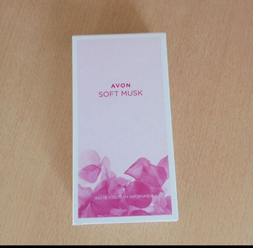 Avon Soft Musk kadın parfümü, yumuşak ve çiçeksi kokuya sahip. Paket üzerinde pembe yaprak desenleri bulunur.