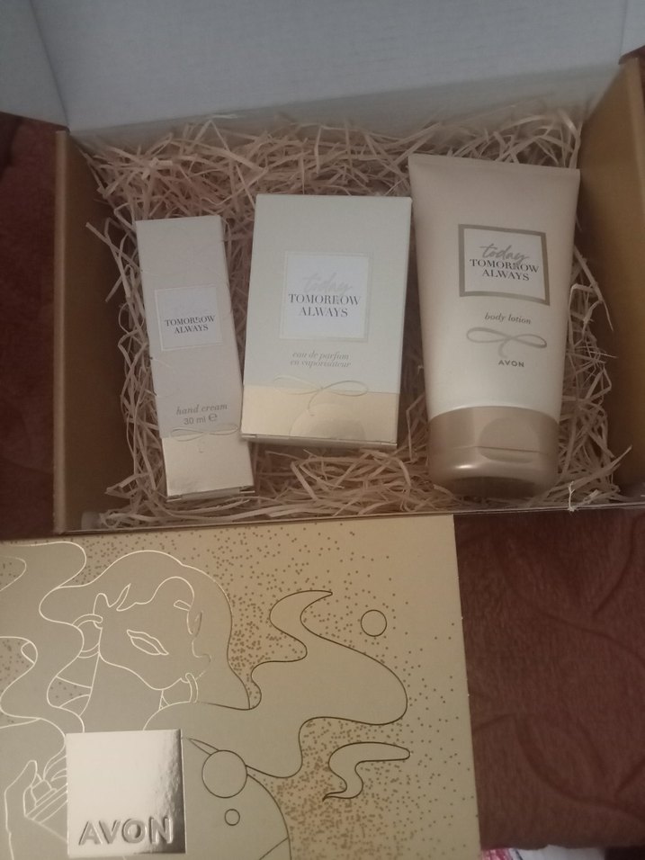 Avon Today seti, parfüm, vücut losyonu ve el kremi içerir, uyumlu bir koku deneyimi sunar.