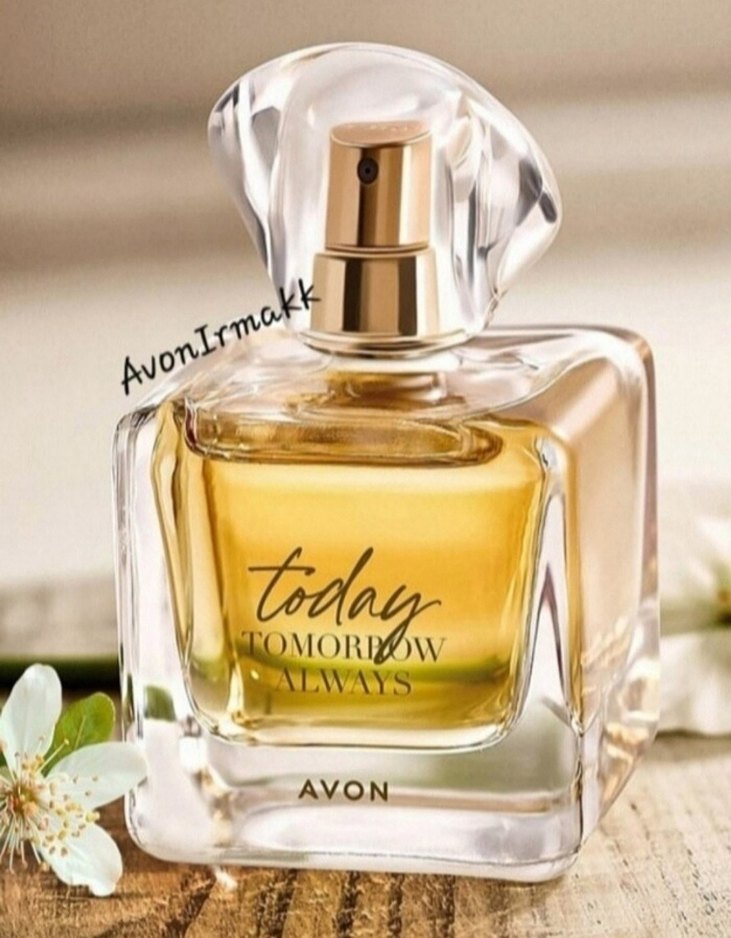 Avon Today Tomorrow Always kadın parfümü, altın renkli püskürtücü ve şeffaf cam şişeye sahiptir. Kalıcı ferah koku sunar.