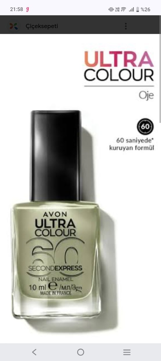 Avon Ultra Colour haki renkli, parlak tırnak cilası 60 saniyede kuruyan formüle sahiptir.