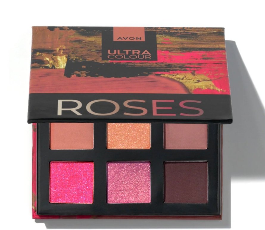 Avon Ultra Colour Roses göz farı paleti, canlı pembe ve koyu tonlarda altı renk içerir, cesur göz makyajları için uygundur.