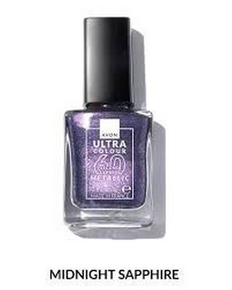 Avon Ultra Midnight Sapphire oje, parlak ve metalik görünümlü mor renk sunar.