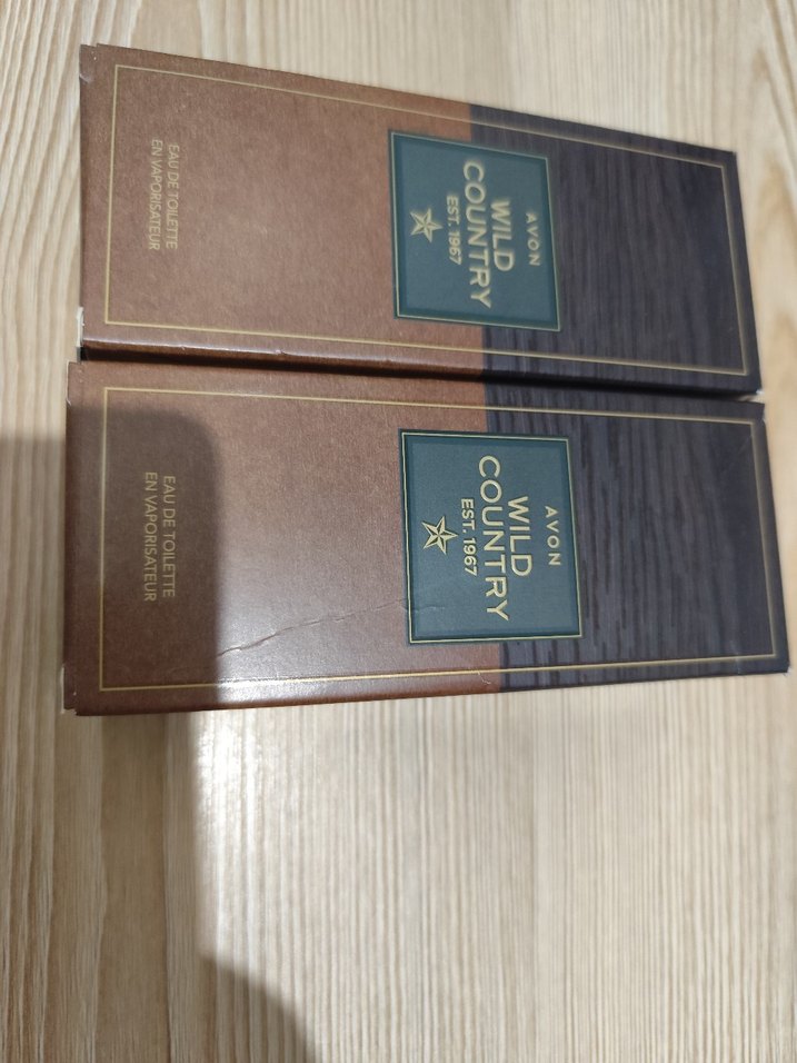 Avon Wild Country erkek parfümü, koyu kahverengi vintage tarzda kutuda. Klasik ve geleneksel kokusu ile iki adet Eau de toilette seti.